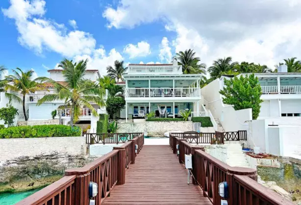 "Searenity" a Mediterranean-style villa is located along Old Fort Ridge combines coastal elegance with a laid-back but modern vibe. Containing about 45 feet of elevated ocean frontage, this spacious living area flows seamlessly onto a verandah ideal for both relaxing and entertaining. The kitchen and dining space are a testament to fine craftsmanship, with custom cabinetry, top-of-the-line appliances, and a cozy island with seating. The primary suite is located on the top floor and includes a private sun deck with panoramic ocean views. On the lower levels, you’ll find three ensuite bedrooms, a beautifully appointed kitchenette, laundry room, and a shaded terrace with seating. The property also features a stunning pool, direct ocean access via a private staircase, and a newly upgraded dock and gazebo. Additional perks include private parking with gated access, an outdoor shower, a backup generator, a reverse osmosis system, jet ski lifts, high-speed Wi-Fi, and a Sonos sound system. This villa is a true coastal haven, blending luxury with the tranquility of island life.