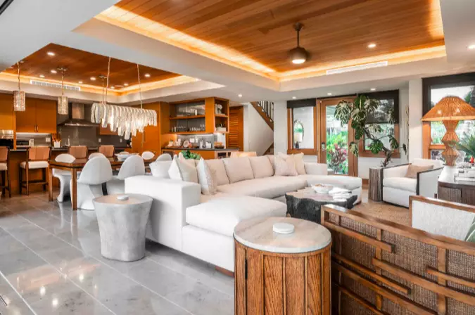 Inside, the home is being elevated with a new, high-end custom interior design by Pacaso, featuring curated furnishings, luxury materials, and a serene palette inspired by the natural beauty of the Kohala Coast. The chef’s kitchen includes Sub-Zero and Wolf appliances, generous stone surfaces, and custom cabinetry. Every room is designed to maximize natural light and showcase the surrounding views, creating a calm, modern retreat for owners and guests.